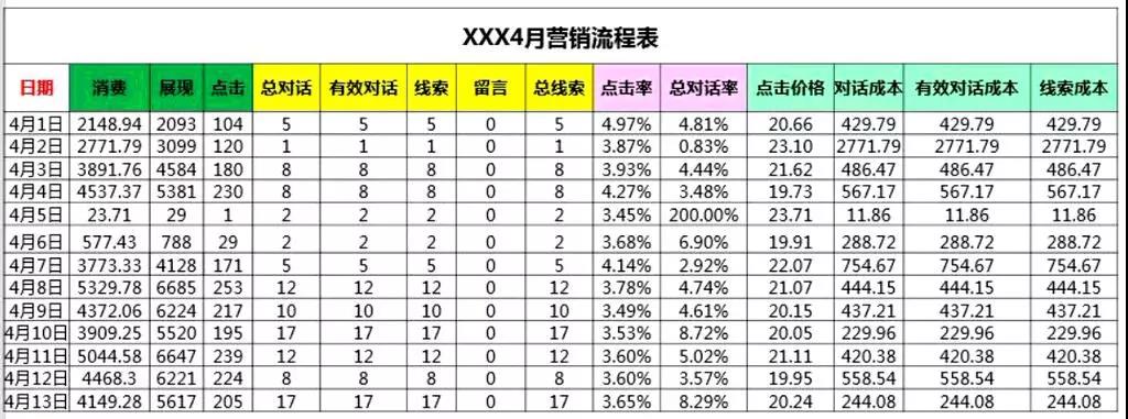 再來看它的對話率,整體還是處于一個上升趨勢,只是有點(diǎn)不穩(wěn)定,但點(diǎn)擊率并不處于一個上升趨勢,各項(xiàng)成本也是偏高。